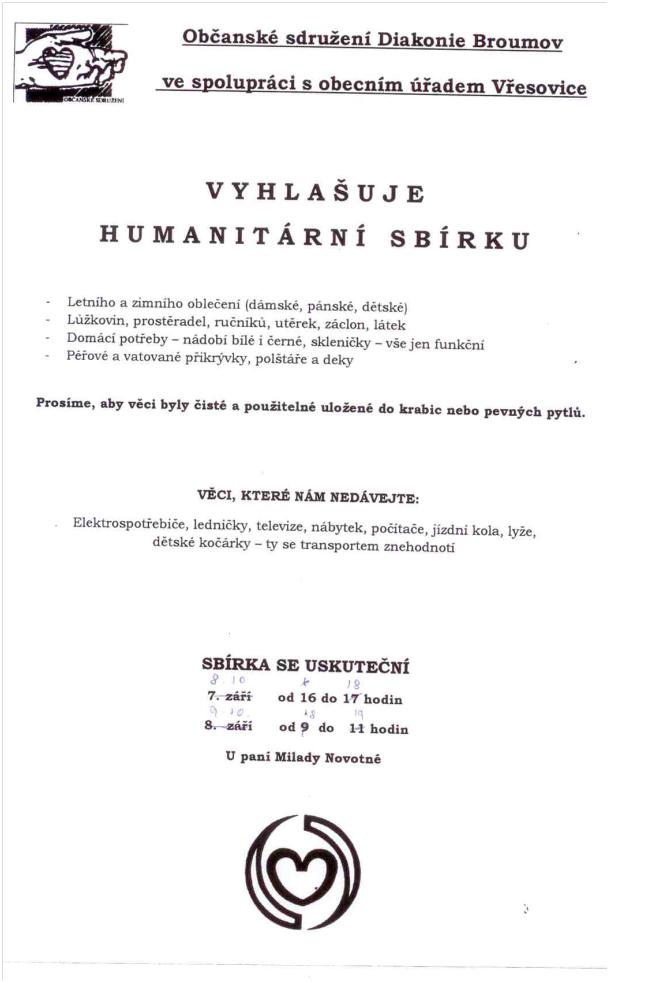 Úvod > Život v obci > Hlášení místního rozhlasu > Hlášení ze dne 3.10.2013 - Sbírka
